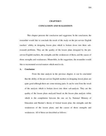 Especially for the pre-service English teachers who have less experience in teaching, designing lesson plan is quite significant to do. Because they will be the in-service ones and teach the real students at the real schools, knowing the ability of the pre-service English teachers in designing lesson plan is important.